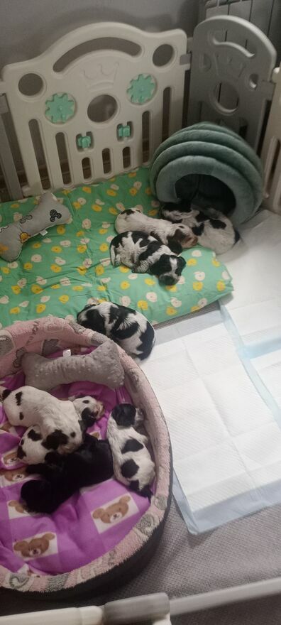 Szczenięta wyruszą do nowych domów pod koniec marca zaszczepione, odrobaczone, zachipowane z czteropokoleniowym rodowodem. Ze strony matki przodkowie z FCI.